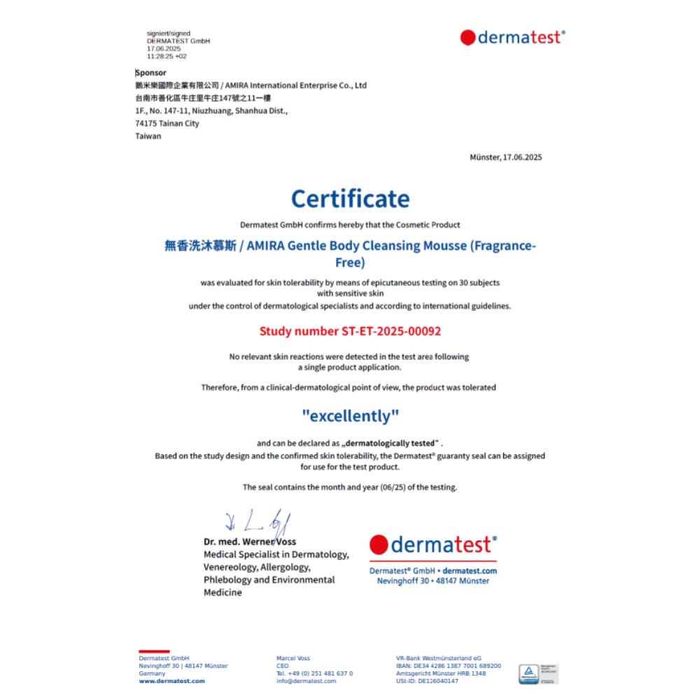 ✓ 通過德國Dermatest安全測試,獲得EXCELLENT標章