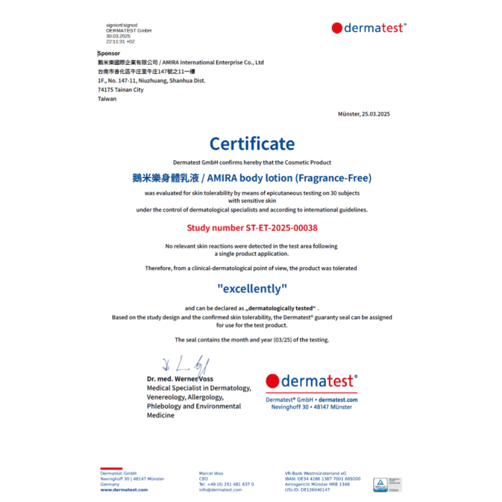 ✓ 通過德國dermatest安全測試,獲得EXCELLENT標章