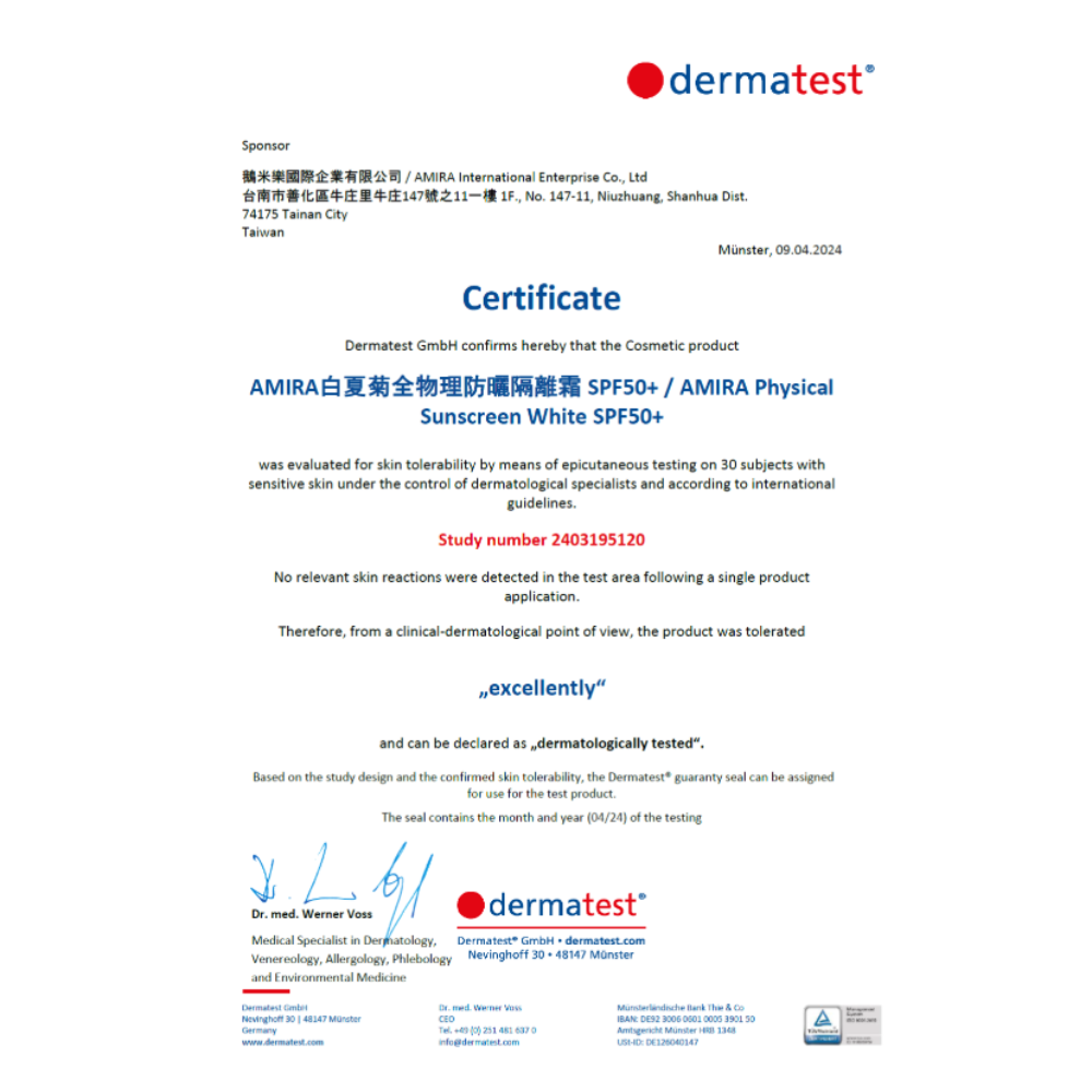 ●Dermatested in Germany and awarded the EXCELLENT certification.