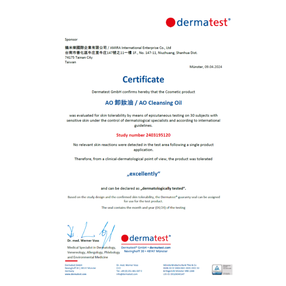 ●Dermatested in Germany and awarded the EXCELLENT certification.
